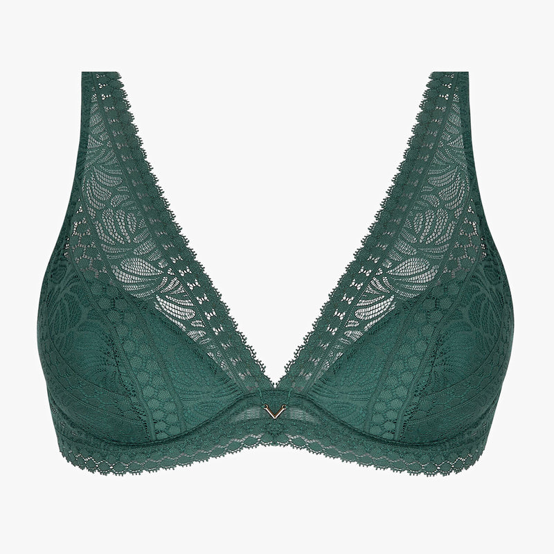 Antigel Atelier Seduction podprsenka s kosticí polopevná krajka tmavě zelená