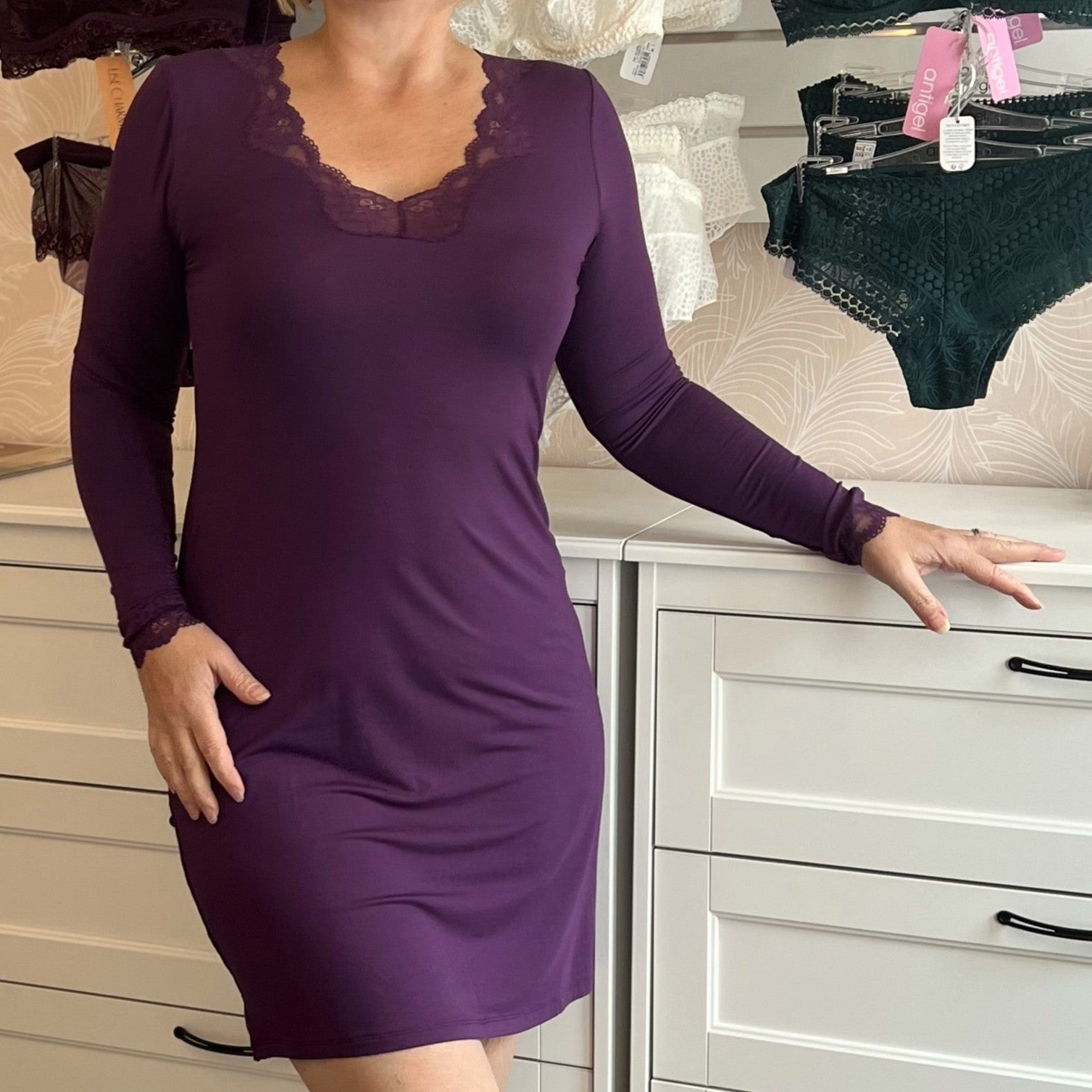 Antigel Simply perfect noční dlouhý rukáv švestková fialová