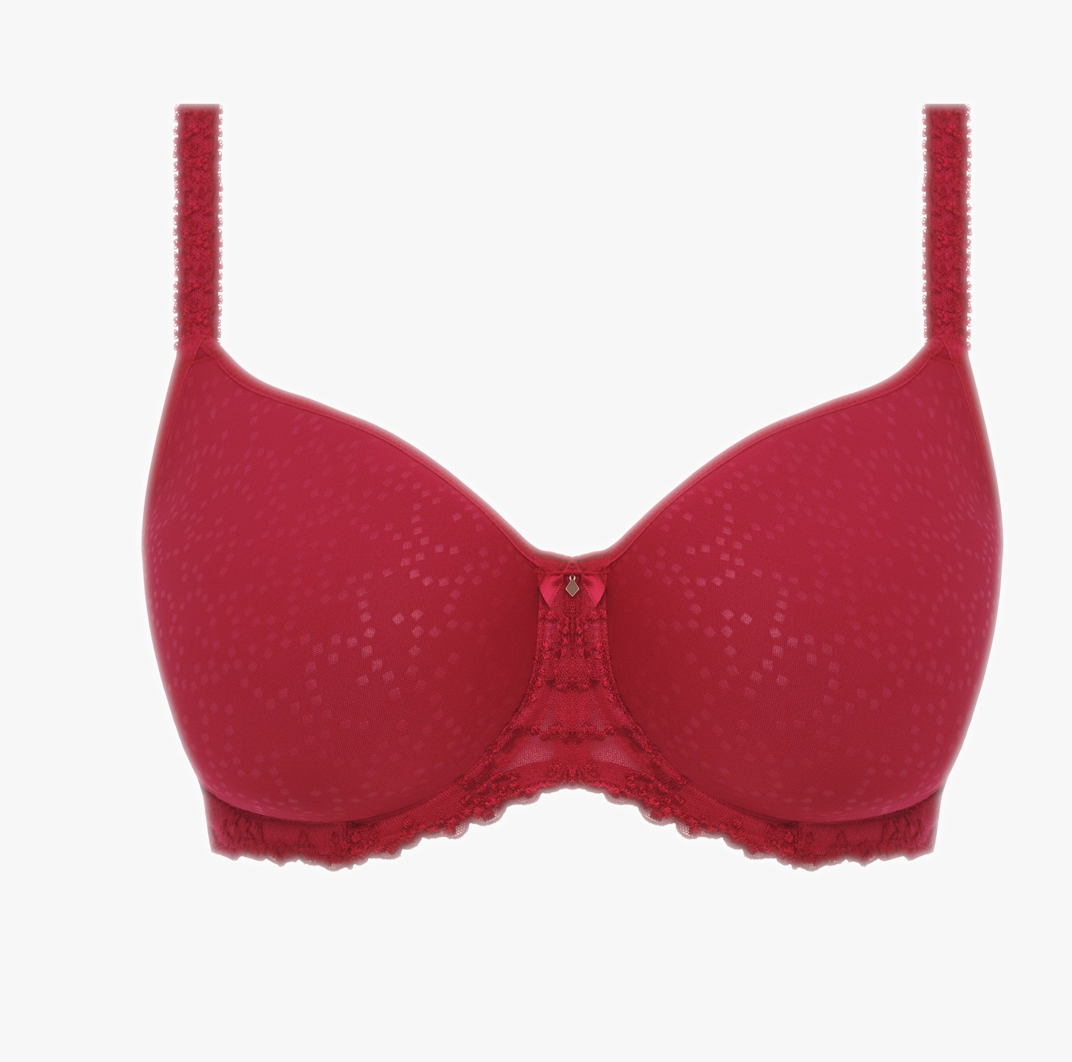- jemný vzor na košíčkách, krásná krajka po spodním lemu i na středu podprsenky a detail v podobě mašličky s přívěskem