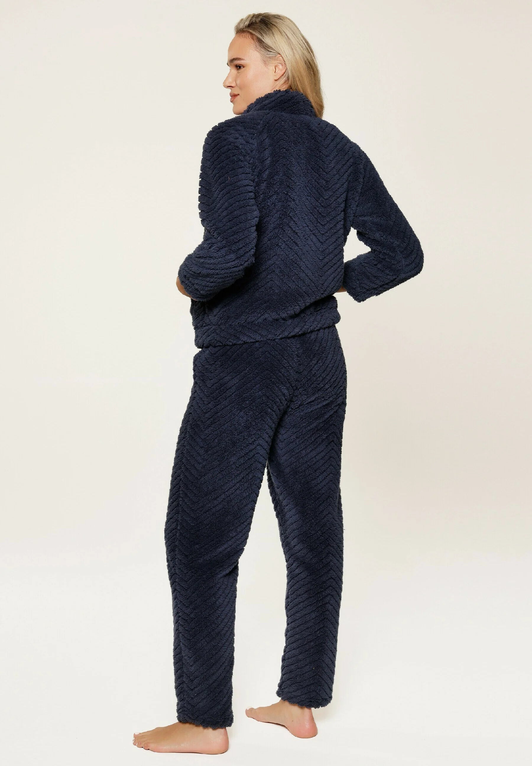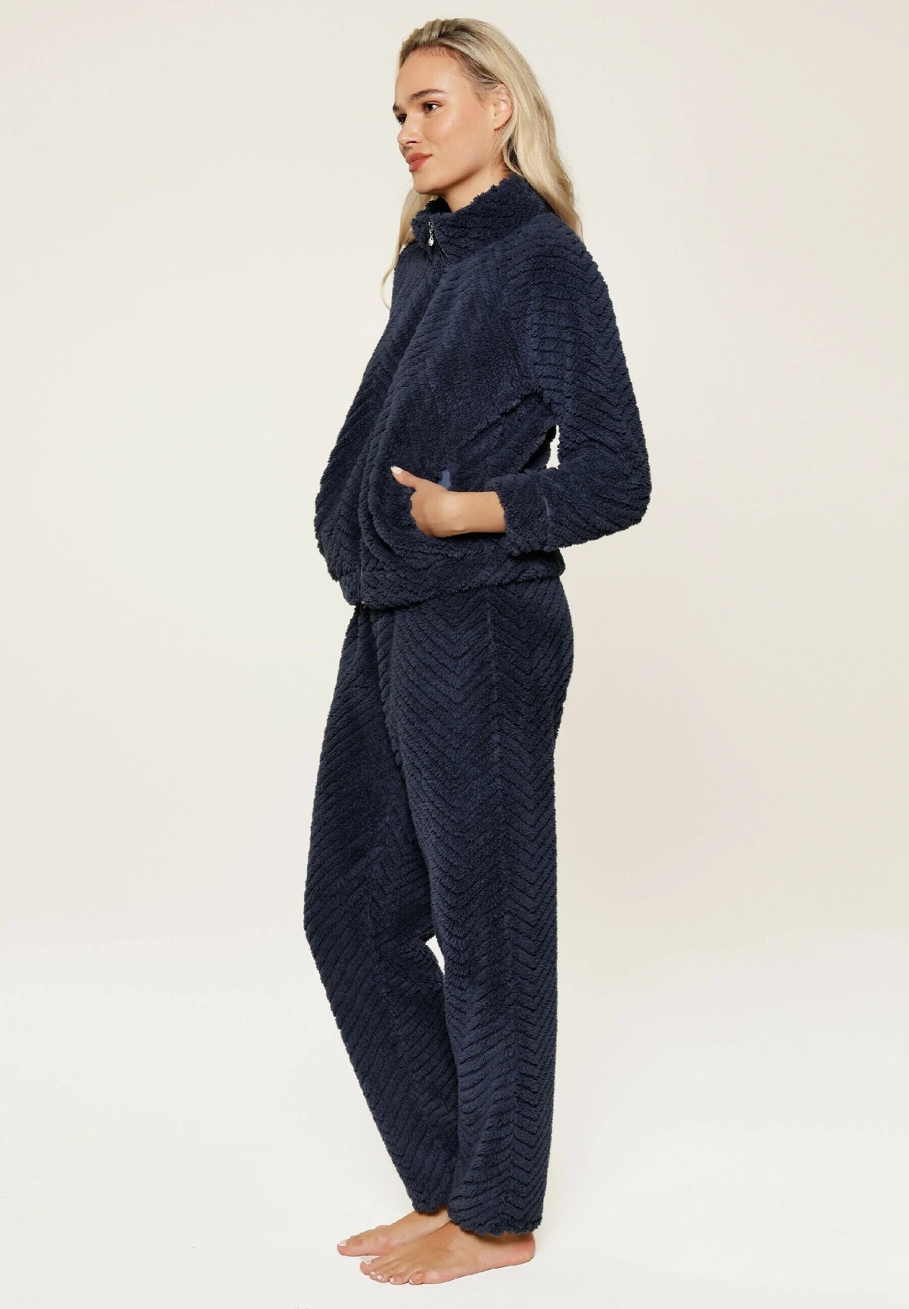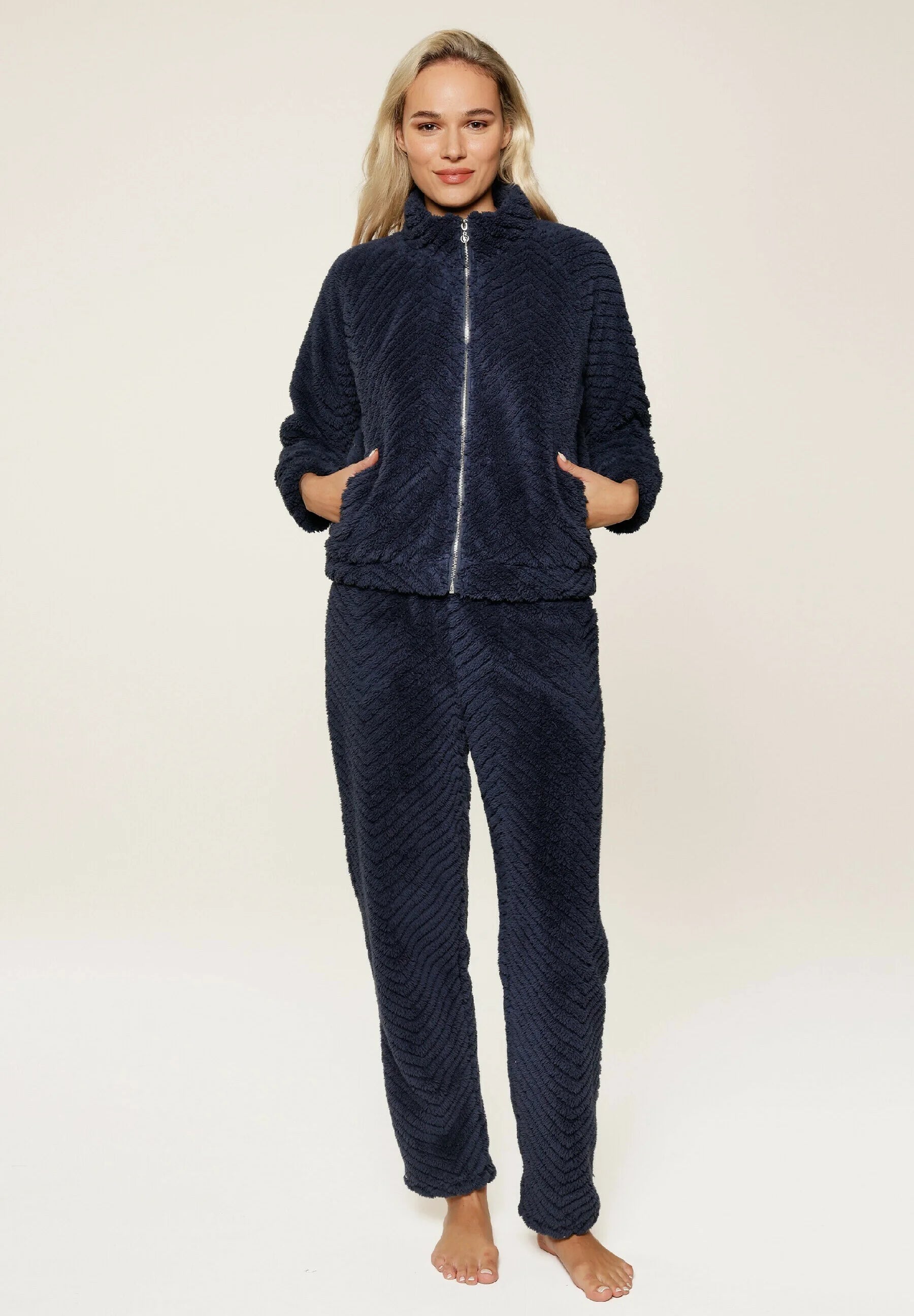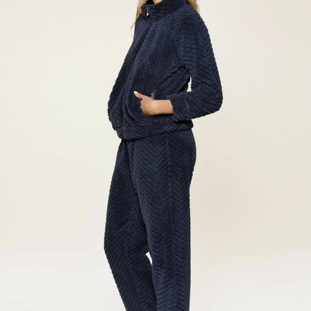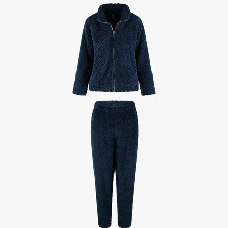 LingaDore Fluffy domácí set na zip chlup tmavě modrá