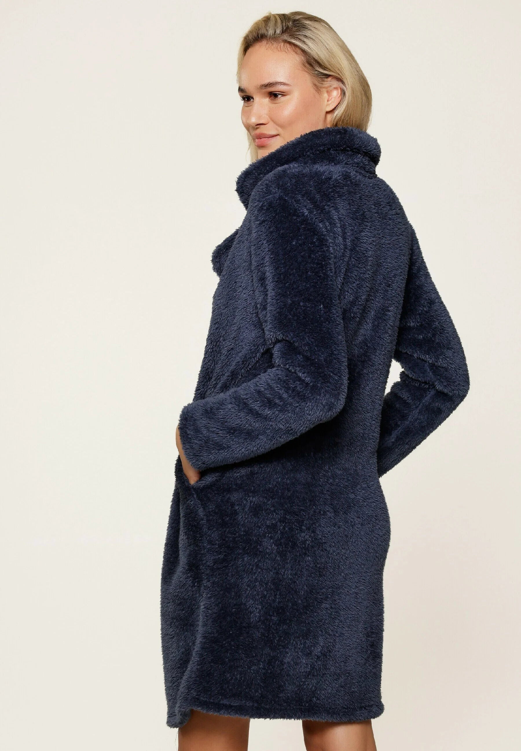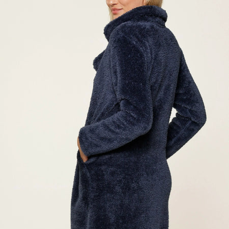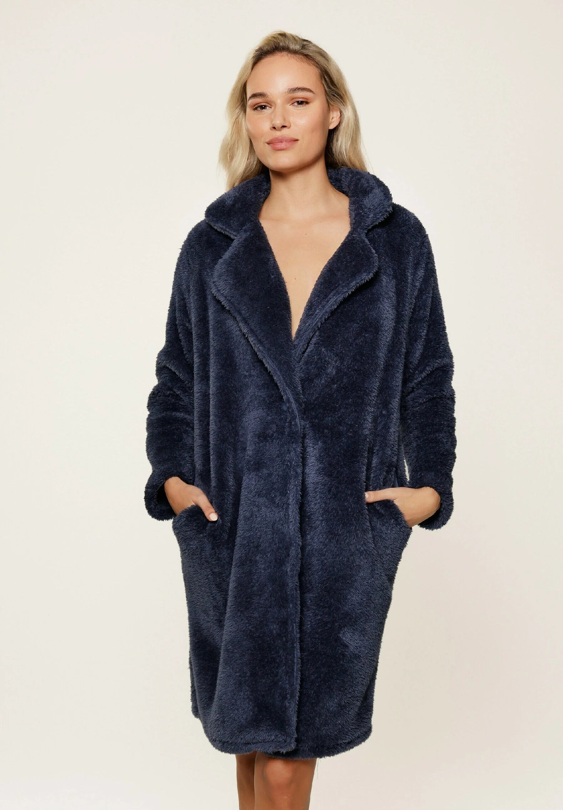 LingaDore Fluffy župan na knoflík chlup tmavě modrá