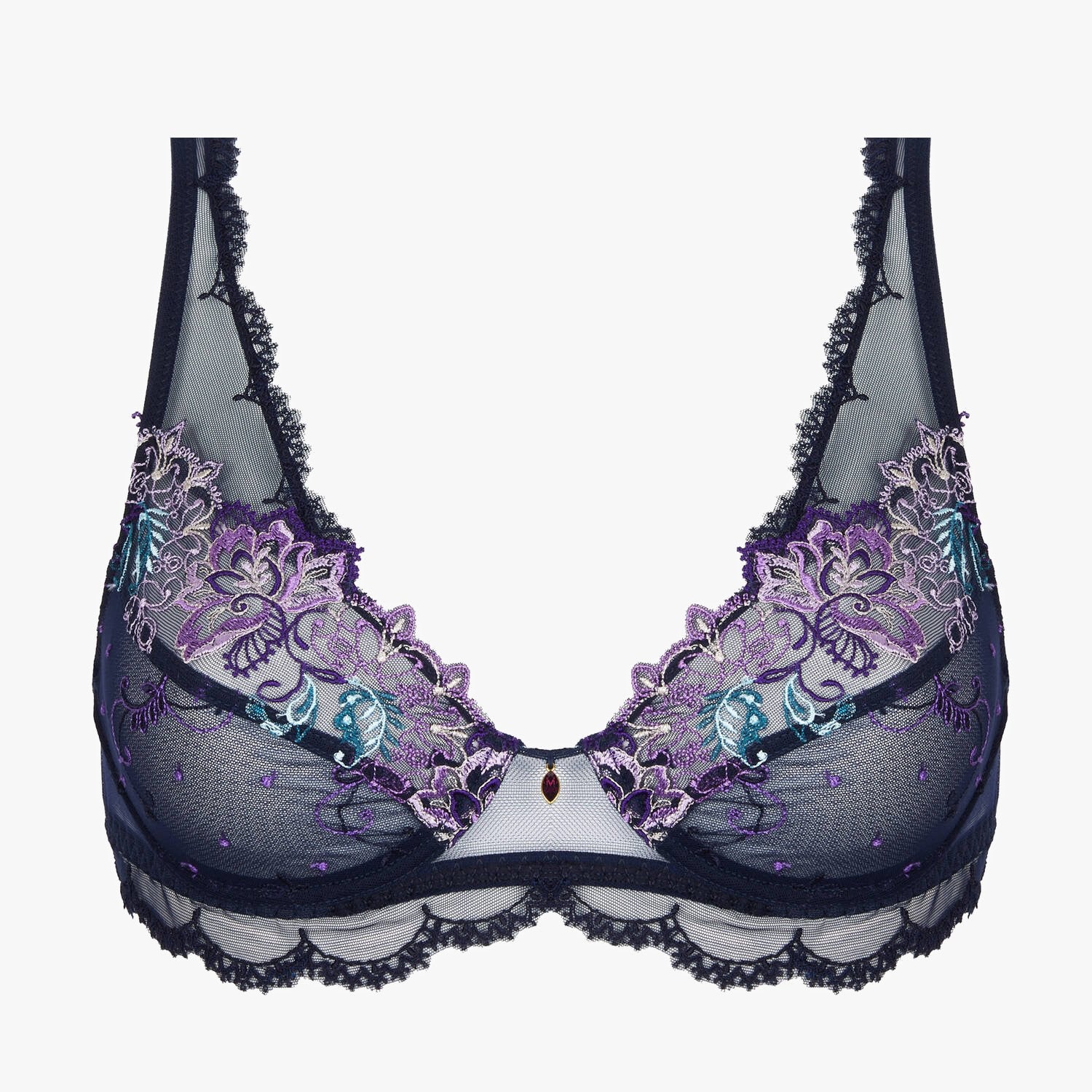 Lise Charmel Deesse Desirs podprsenka s kosticí nevyztužená fialovozelená výšivka tmavě modré